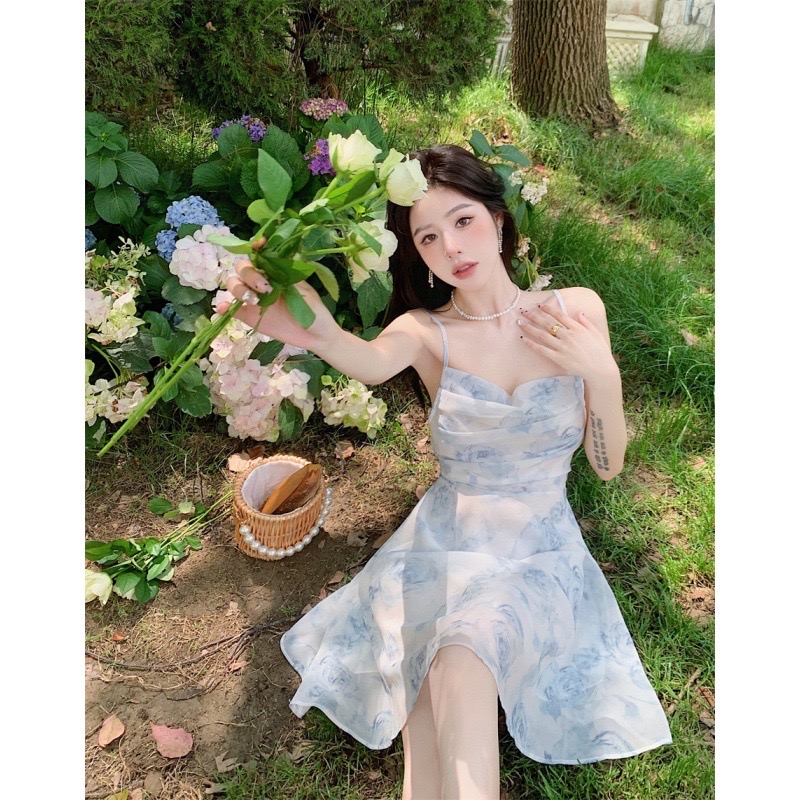 溫柔風碎花吊帶裙夏季新款超仙森系初戀收腰顯瘦小個子A字裙 有短款長款 Gentle floral slip dress summer new style
